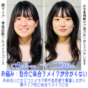 【顔タイプ&骨格診断+フルメイクコース】フレッシュのお客様Before→After