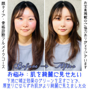 【顔タイプ&骨格診断+フルメイクコース】フレッシュのお客様Before→After