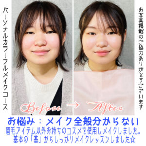 【パーソナルカラーフルメイクレッスン】Springのお客様Before→After