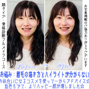 【顔タイプ&骨格診断+フルメイクコース】ソフトエレガントのお客様Before→After